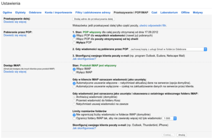 Jeśli adres e-mail pochodzi z Gmail’a upewni się, że w ustawieniach skrzynki w Gmail.com jest włączona obsługa IMAP/POP.