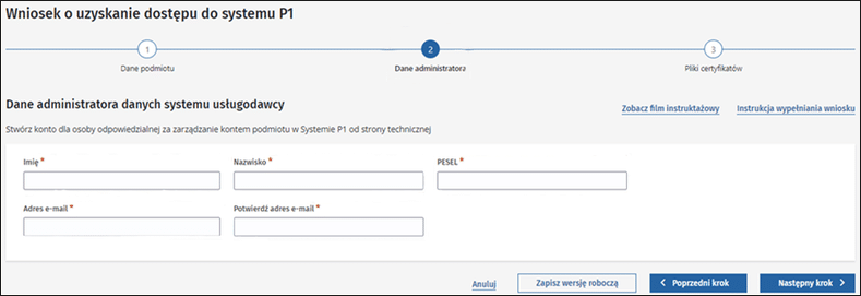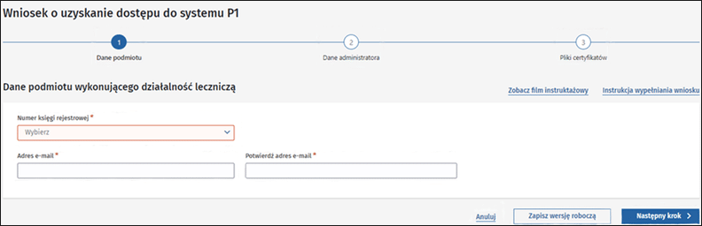 Krok 2: Utwórz wniosek o dostęp do systemu P1